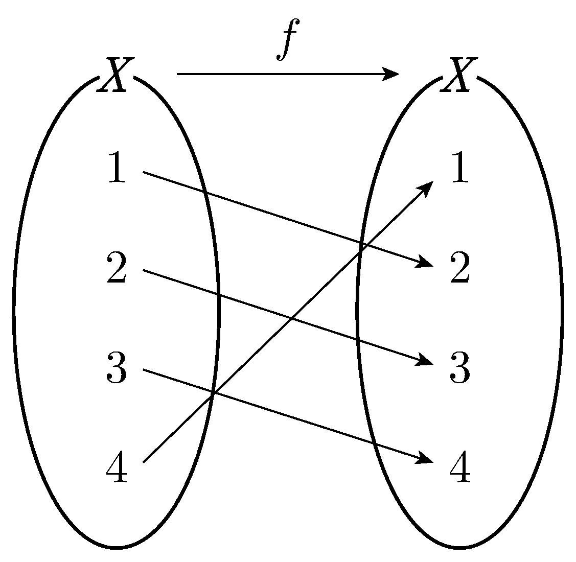 Figure below depicts a function \(f: X \;\!\to\;\!X\).