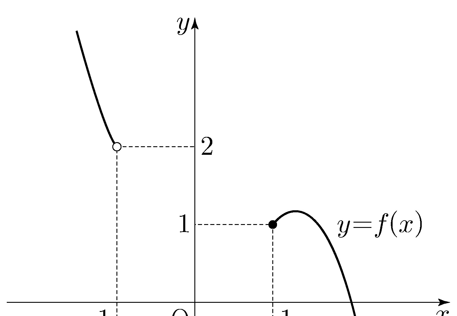 What is the value of \(\displaystyle\lim_{x\;\!\to\;\!-1-} \!\! f(x) - \lim_{x\;\!\to\;\!1+} \! f(x)\)? [3 points]