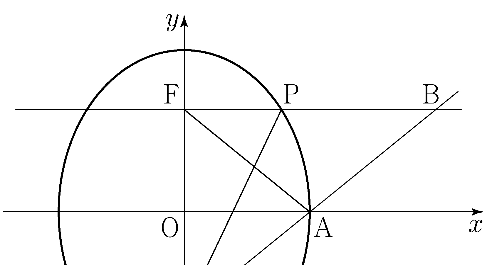 As the figure shows, consider the ellipse \(\dfrac{x^2}{a^2}+\dfrac{y^2}{25}=1\) with two foci \(\mathrm{F}(0,c)\) and \(\mathrm{F'}(0,-c)\).