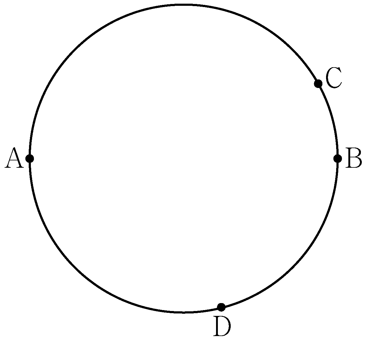 Let \(\mathrm{A,B,C}\) and \(\mathrm{D}\) be four distinct points on a circle that satisfy the following. What is the value of \(\big|\overrightarrow{\mathrm{AD}}\big|^2\)? [4 points]